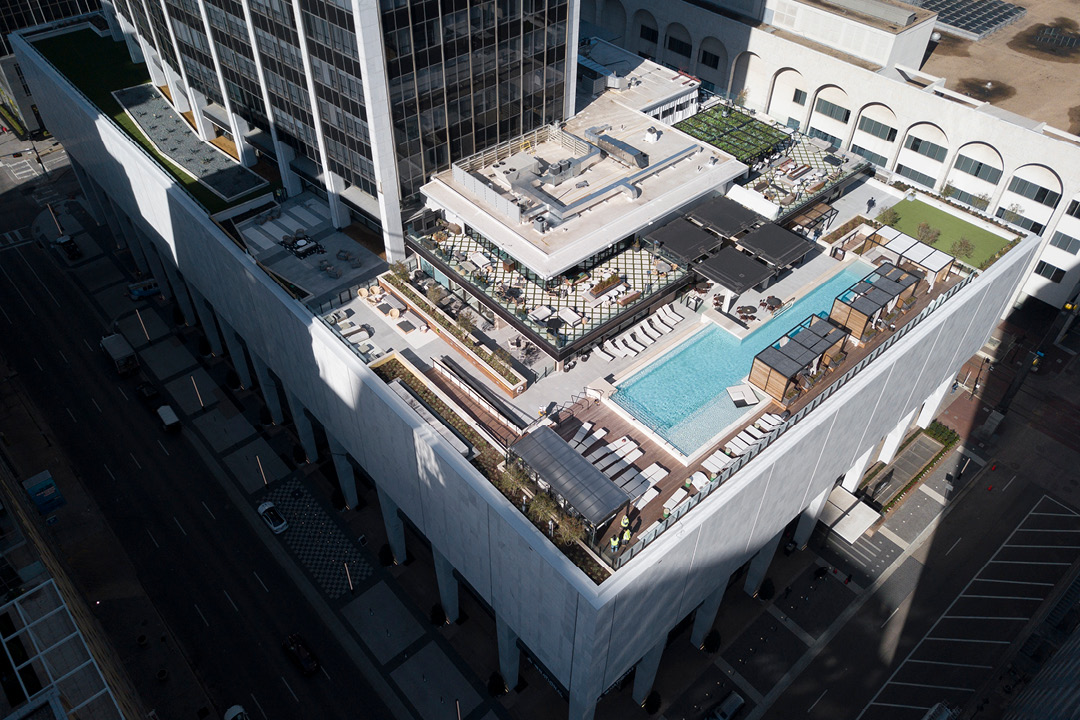 ANDRES recently transformed the 52-story former First National Bank Tower into a 219-room Thompson Dallas, 324 apartment units, restaurant space (Monarch Dallas, Catbird, Kessaku, and Nine at The National), retail space (Lucchese, The Botanical Mix, and Tondeo Hair Lounge), and office space (Downtown Dallas, Inc.).