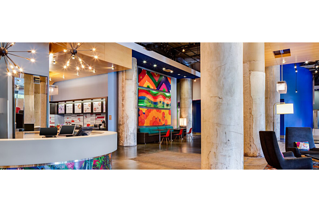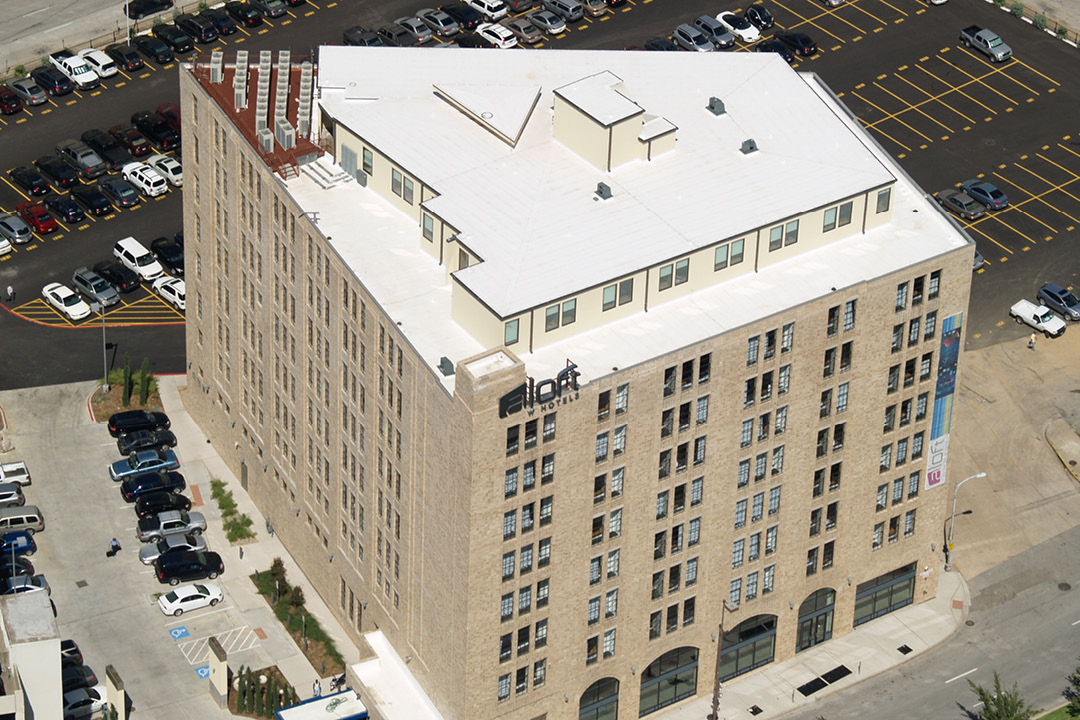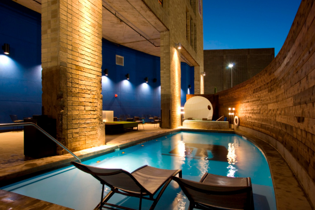 ANDRES turned the 83-year-old warehouse into the Starwood Hotels & Resorts' first Aloft hotel in Dallas. Originally built for the Santa Fe Railway, the eight-story brick building had been vacant for more than a decade. The 160,000-square-foot structure now includes 193 hotel rooms. Among many other amenities, the hotel contains an outdoor pool, a gym, an electric car charging station, a lounge, a business center, and a bar.