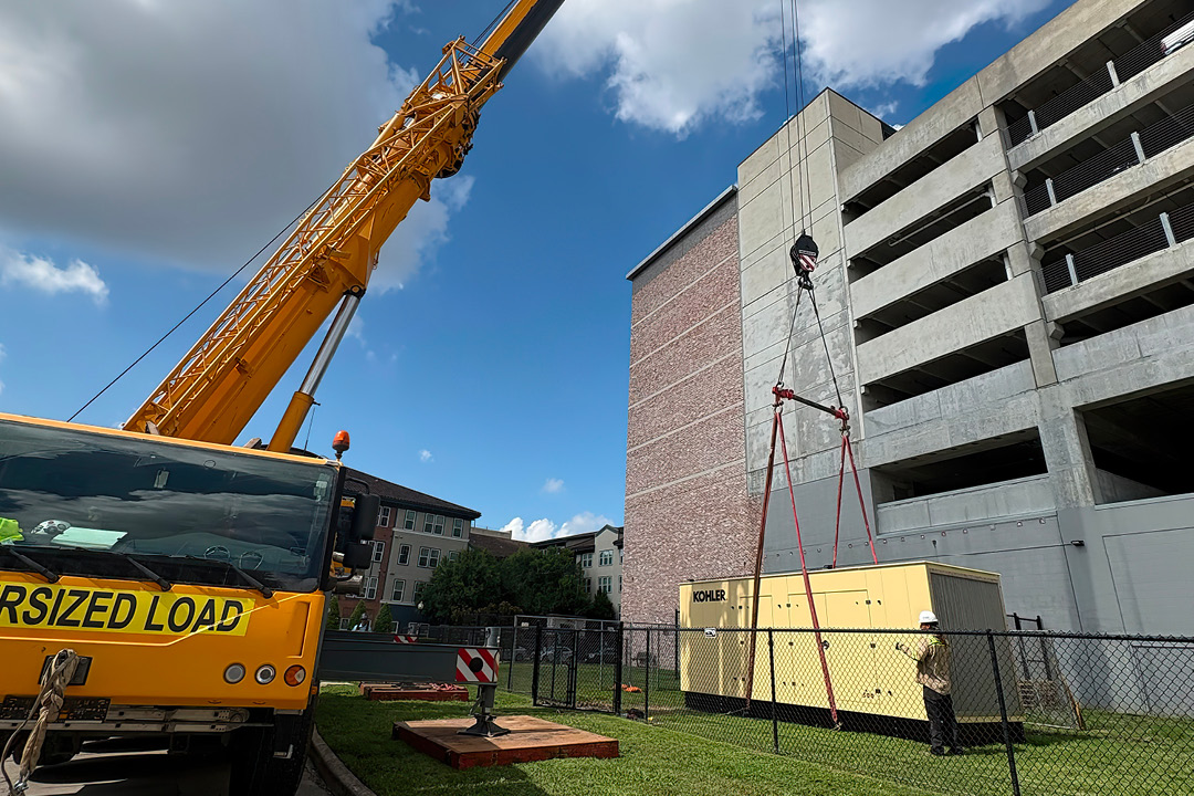 The Buffalo Heights Generator project consisted of installation of a 500KW natural gas backup generator system at Buffalo Heights Phase 1, a mixed-use residential and office development in Houston. The generator is incorporated into the existing electrical circuitry via arrangement of seven manual transfer switches. This system provides backup power for critical building systems.