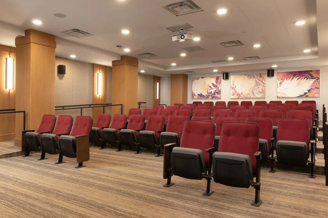 The Assisted Living and Memory Care Building (Building 5) is a five-level structure constructed of one load-bearing metal stud upper level over four levels of concrete frame infilled with metal studs on a structural foundation with piers. This dedicated structure comprises 116 units, including 84 Assisted Living units and 32 Memory Care residences. Level one hosts the commercial kitchen, dining spaces, and community gathering areas on all levels. It features four warming pantries through the upper levels, six interior fireplaces, a salon/barbershop for residents' convenience, and an exercise room. Exiting Level two reveals two courtyards at each end of the building, offering residents tranquil outdoor spaces with a combination of seating areas and plants.