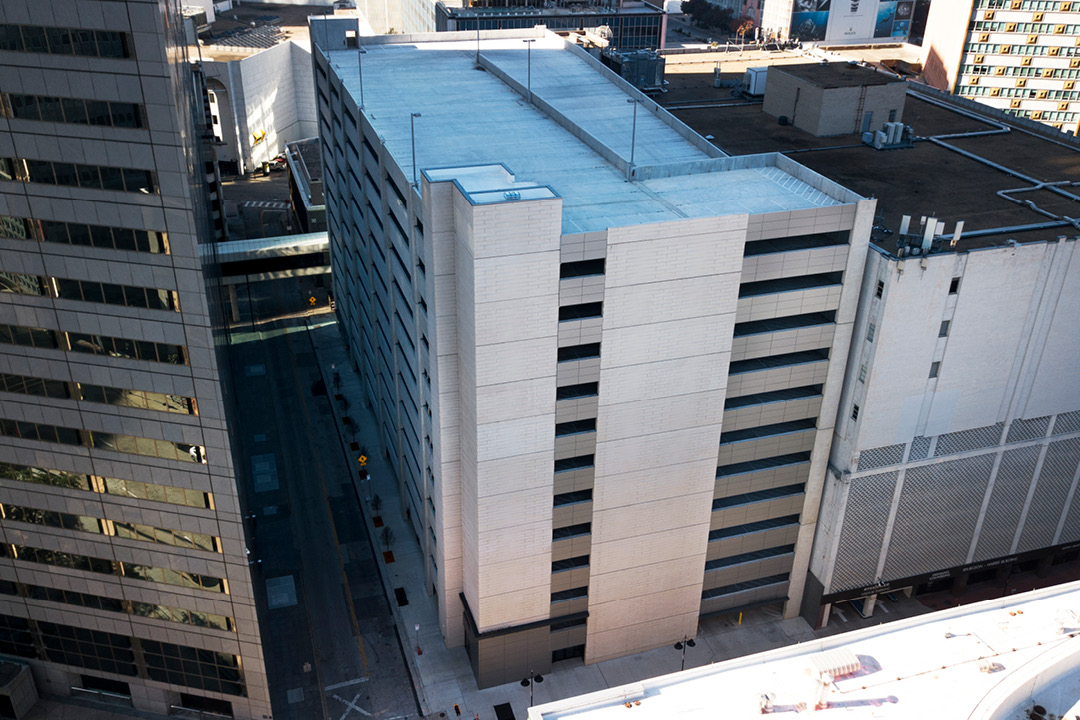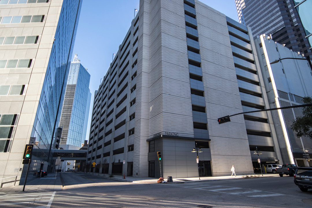 Located in the heart of downtown Dallas, the 13-story precast concrete parking garage contains 983 parking spaces.