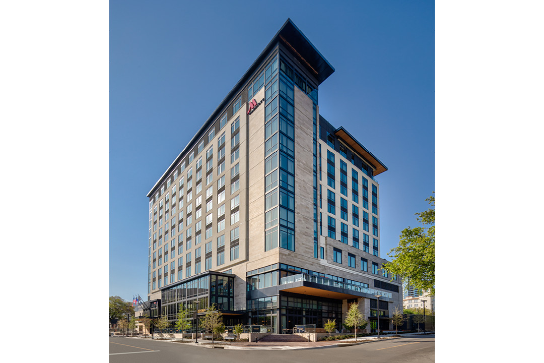 The 14-story tower contains 255 guest rooms, three levels of below-grade parking, a restaurant on the ground floor, a coffee shop, and 13,000 square feet of meeting space. The Marriott is located in the heart of uptown Dallas, and is only a half block away from the Katy Trail.