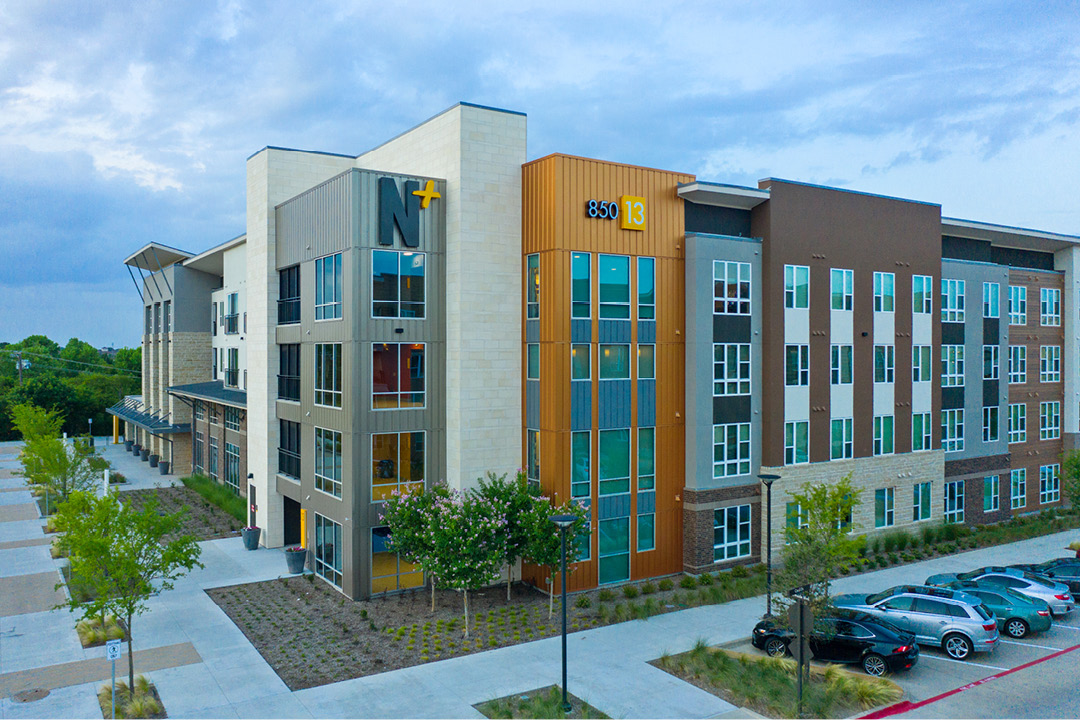 ANDRES was the Design Build Contractor on the University of Texas at Dallas Northside Phase 4 project which is comprised of two separate buildings on 8.4 acres. The 387-unit project includes eight study rooms, a 2-story fitness center, a pool courtyard with two grilling areas, a basketball and tennis court, and an attached 4-story garage.