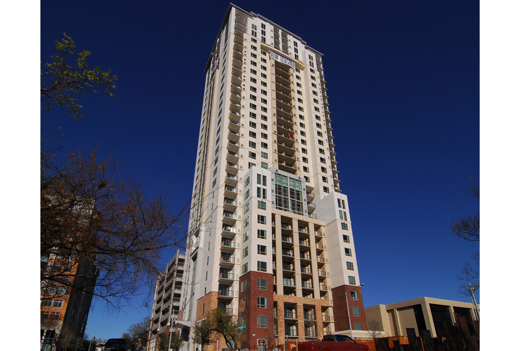 The 31-story, 187-unit residential tower offers spectacular views of the nearby Lady Bird Lake. Windsor on the Lake also includes a two-story live/work unit, 1,000 square feet of retail, private garages, and an attached, nine-story parking garage. Design elements from the buildings of Frank Lloyd Wright, including his famous use of repetitive concrete shapes, are featured prominently throughout the project.