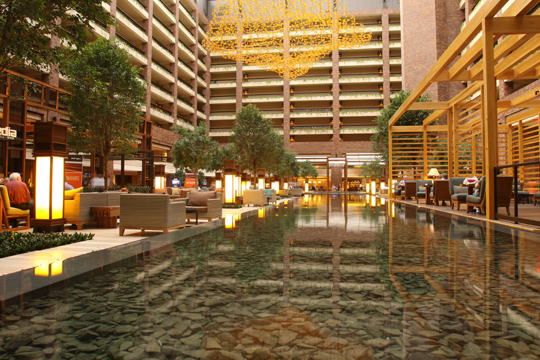 ANDRES completed two projects at the Hilton Anatole; the Media Bar and the atrium. The media bar includes a kitchen, private dining room, lounge, bar, and interactive floor projector. The 8,000-square- foot, 284-person bar is located in the Grand Atrium and is known for its contemporary American cuisine, beers, and cocktails. The atrium, which includes a reflection pool, was featured as the 2011 backdrop for the Major League Baseball Winter Meetings.