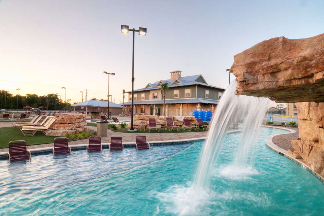 ANDRES was able to not only create a comfortable and safe community for college students, but was able to do so by also adding exclusive amenities. This 22-building community resembles that of a resort, and contains a lazy river, a pool with a sport activity area and a hot tub, a giant outdoor HD movie screen, a fitness center, and study rooms.