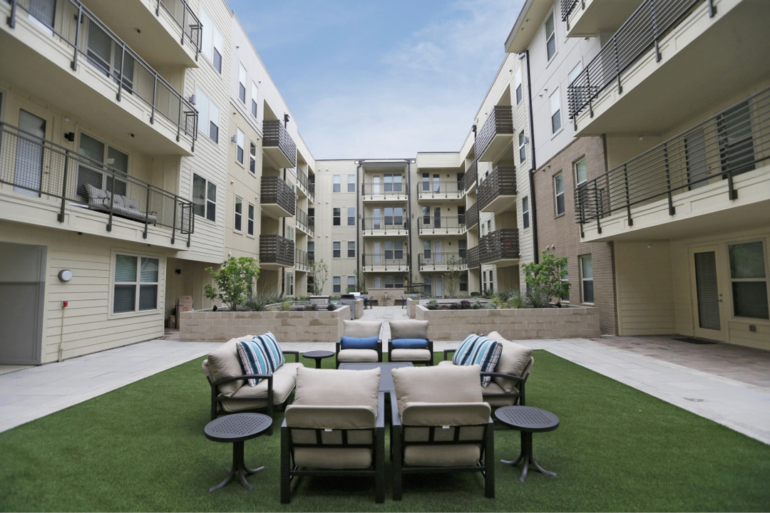 Discovery at the Realm – Phase 1 (DATR) is a project located in Lewisville, Texas, specifically within the Castle Hills Development. DATR included the construction of three separate buildings totaling 423 apartment units, a resort style pool, and a lake. This lake includes a waterfall and lakefront promenade with a mixed-use space that includes the leasing office, dog park, fitness center, yoga center, and a bar/lounge for residents. Each building also has its own individual courtyard area with water features, grilling stations, and fire features.