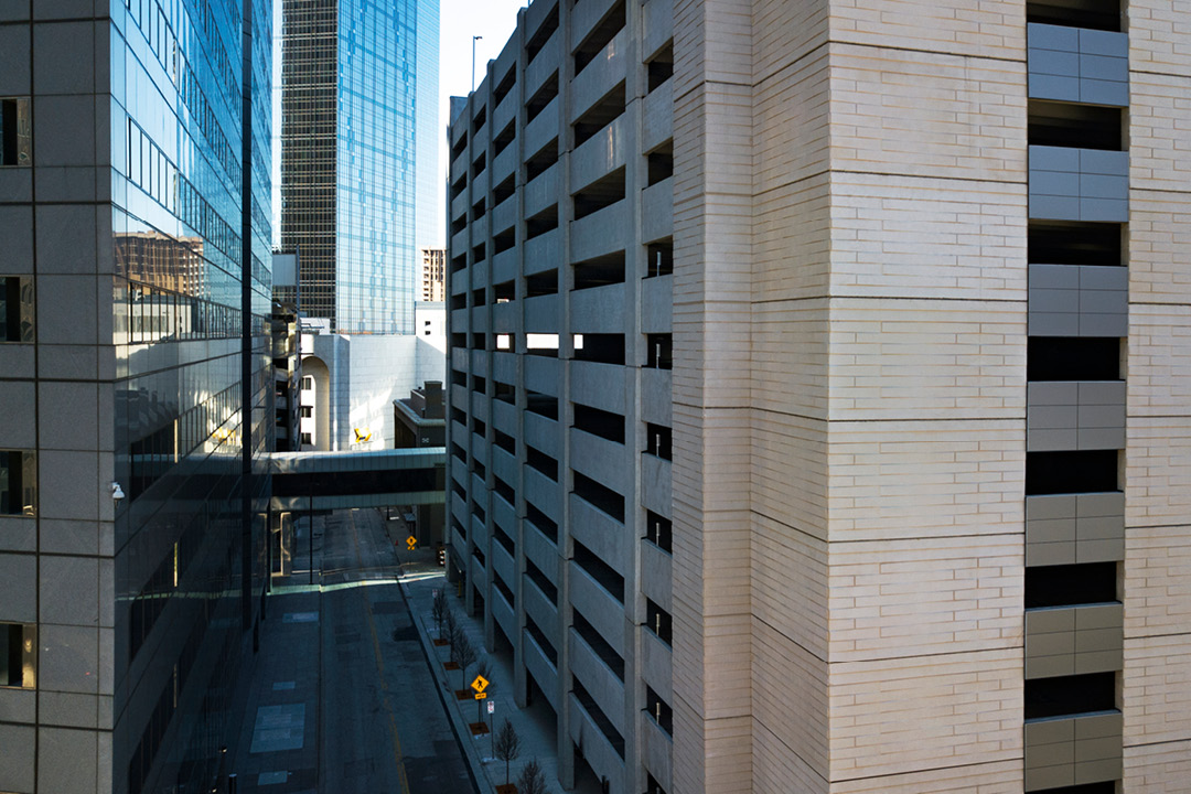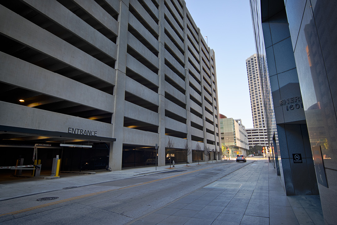Located in the heart of downtown Dallas, the 13-story precast concrete parking garage contains 983 parking spaces.
