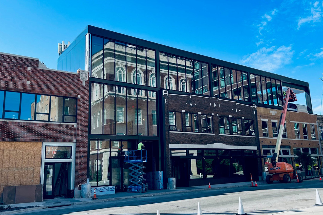 Located in Deep Ellum, four existing 2-story buildings that were built in the early 1900s were transformed into commercial retail spaces. Good-E also includes the addition of a third floor with an open terrace overlooking Elm Street, a new interior atrium, and an elevated mezzanine deck located on the second floor that overlooks the courtyard.