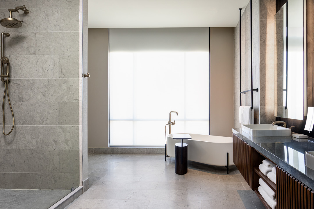 The 14-story tower contains 255 guest rooms, three levels of below-grade parking, a restaurant on the ground floor, a coffee shop, and 13,000 square feet of meeting space. The Marriott is located in the heart of uptown Dallas, and is only a half block away from the Katy Trail.