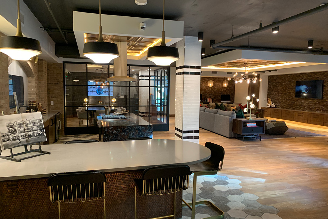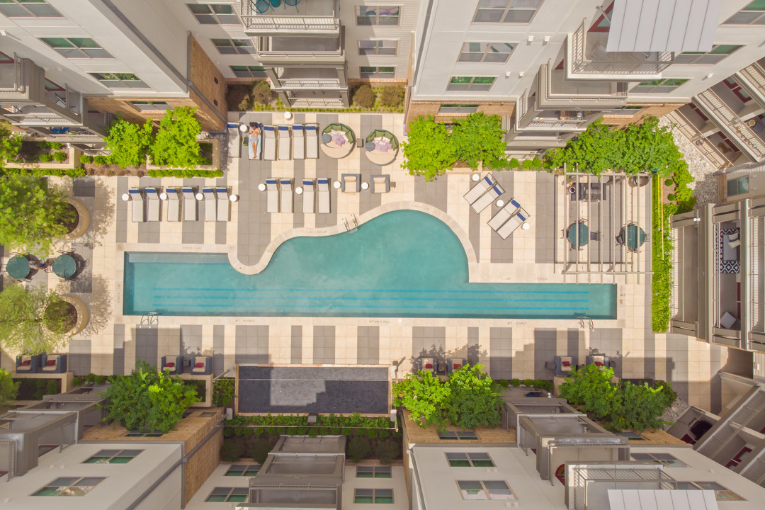 The 6-story project contains 302 residential units, a 7-level parking garage, 24,000 square feet of retail space on the ground floor, and a public plaza. Novel Bishop Arts also includes a guitar-shaped pool to commemorate Stevie Ray Vaughan, who was born and raised in the area.